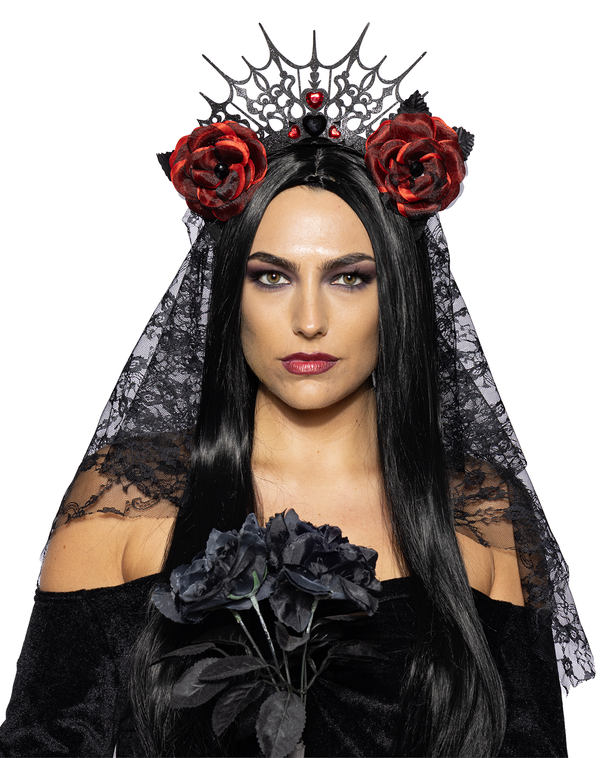 Finish your transformation: the UnderWorld Accessories Collection is all about wicked little details - gothic veils, devil horns, mesmerizing masks, and crowns that elevate every look with dark elegance.